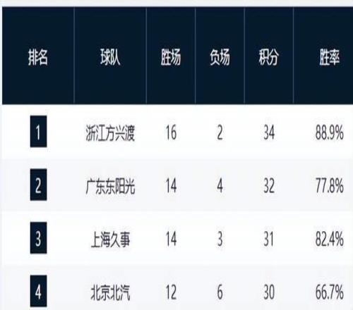 卫冕冠军第一,广东第2,夺冠热门重回前4,山东第8,辽宁仅第10